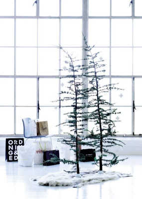 A cool idea. The carpet under this odd Christmas tree is a raindeer fur. Images BoBedre.